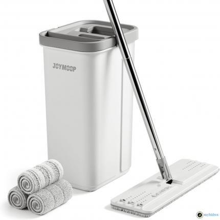 Dieses Wischmopp- und Eimersystem macht die Reinigung deutlich einfacher. Der flache Mop kommt unter Möbel und die Mikrofaser-Pads sind waschbar und wiederverwendbar. Perfekt für Laminat, Fliesen oder Holzböden.
